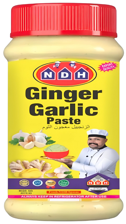 NDH Ginger Garlic Paste is a premium, ready-to-use blend of fresh ginger and garlic, carefully ground to preserve natural aroma, flavor, and health benefits. Ideal for curries, gravies, marinades, and stir-fries, it saves time in cooking while ensuring authentic taste in every dish.